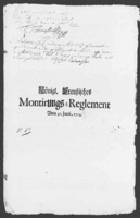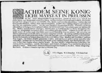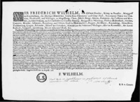 Koning Frederik Willem I verordent, dat met ingang van 1 september 1716 voor alle publieke akten, uitgegeven door overheden in het Pruisisch Overkwartier, gebruik gemaakt moet worden van gestempeld papier. De verordening geeft voorschriften met betrekking tot de verschillende soorten van gestempeld papier en de akten waarvoor deze gebruikt dienen te worden, zoals benoemingsakten, admissies van advocaten, procureurs en notarissen, landmeters etc.; genadebrieven, leenakten, octrooien, remissiebrieven, brieven van naturalisatie en legitimatie, etc. Daarnaast geeft de verordening voorschriften met betrekking tot de hoogte van het verschuldigde stempelrecht.Plaats van uitvaardiging: Berlijn -