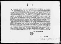 In verband met het verklaren van de staat van oorlog tussen Pruisen en Zweden beveelt de Commissio Regia namens de koning alle onderdanen uit Pruisisch Opper-Gelre, die zich in Zweedse krijgsdienst of civiele dienst bevinden, zich daaruit terug te trekken onder dreiging met straffen aan eer en goed, dan wel lijf en leven.Plaats van uitvaardiging: Geldern -