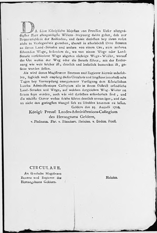 Het Landes Adminstrations Collegium gelast de lokale overheden binnen acht dagen wegwijzers te plaatsen op kruisisngen van landstraten en wegen, op straffe van "unangenehmer Verfügung".