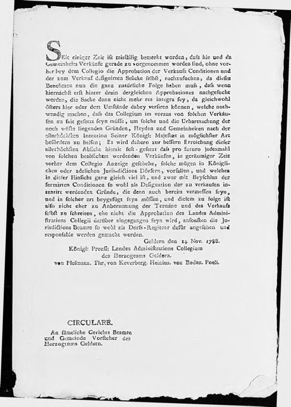 Het Landes Administrations Collegium constateert dat op diverse plaatsen is overgegaan tot verkoop van gemene gronden, zonder dat tevoren de verkoopvoorwaarden ter goedkeuring zijn voorgelegd. Het Landes Adminstrations Collegium verbiedt tot verkoop over te gaan, alvorens de voorwaarden zijn goedgekeurd. De lokale jurisdictie beambten en de dorpsregering wordt ter zake verantwoordelijk gehouden.