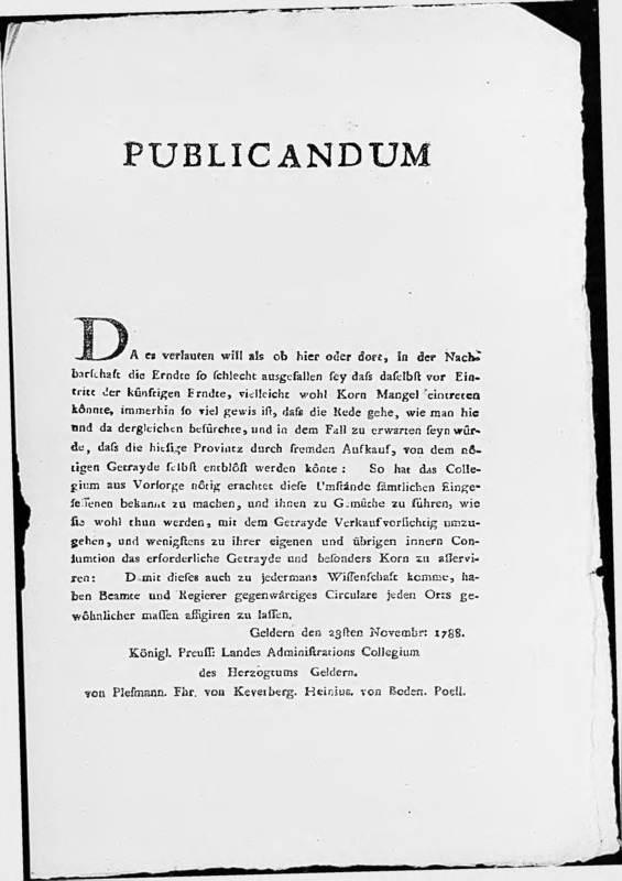 In verband met dreigende graanschaartse worden de ingezetenen vermaand voldoende graan voor eigen gebruik te reserveren en voorzichtig te zijn met de verkoop naar het buitenland.