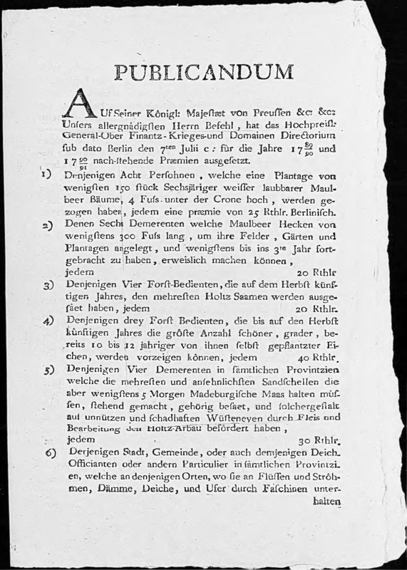 Het Landes Administrations Collegium maakt bekend voor welke economische activiteiten het General Ober Finanz Krieges und Domainen Directorium voor de jaren 1789-1790 en 1790-1791 prijzen heeft uitgeloofd.