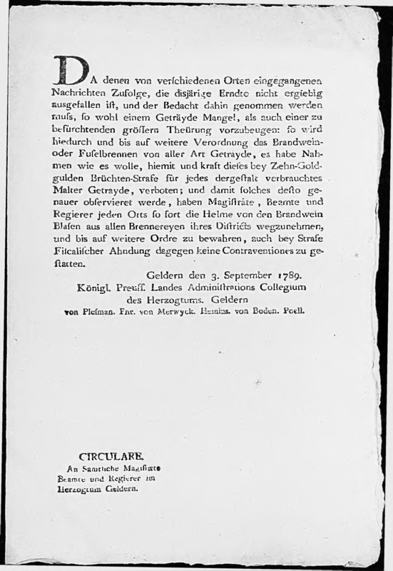 Circulaire ter zake van het verbod op het brandewijnstoken