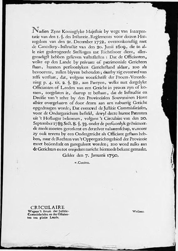 Circulaire ter zake van het forum van Justitie-commissarissen en officianten bij de subalterne gerechten in het Pruisisch Overkwartier