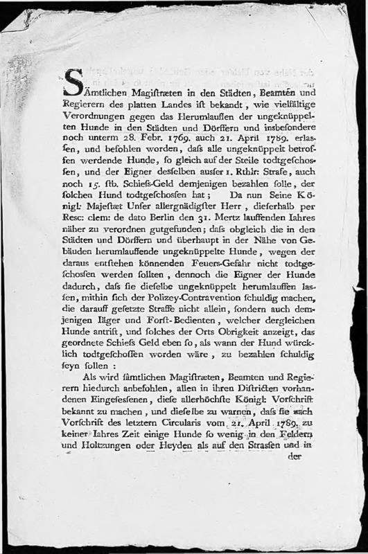 (? 1769-02-28) en (? 1789-04-21) terzake van het afschieten van ongeknuppelde honden ten vrvolge wordt bepaald, dat indien honden in de nabijheid van brandgevaarlijke gebouwen niet afgeschoten zijn, maar op andere wijze gedood, de lokale overheid toch het zogenaamde schietgeld verschuldigd is.