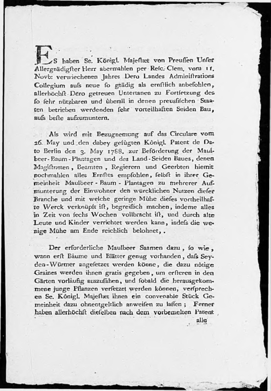 Ter bevordering van de zijdeteelt worden premies in het vooruitzicht gesteld van degenen die moerbei bomen aanplanten.
