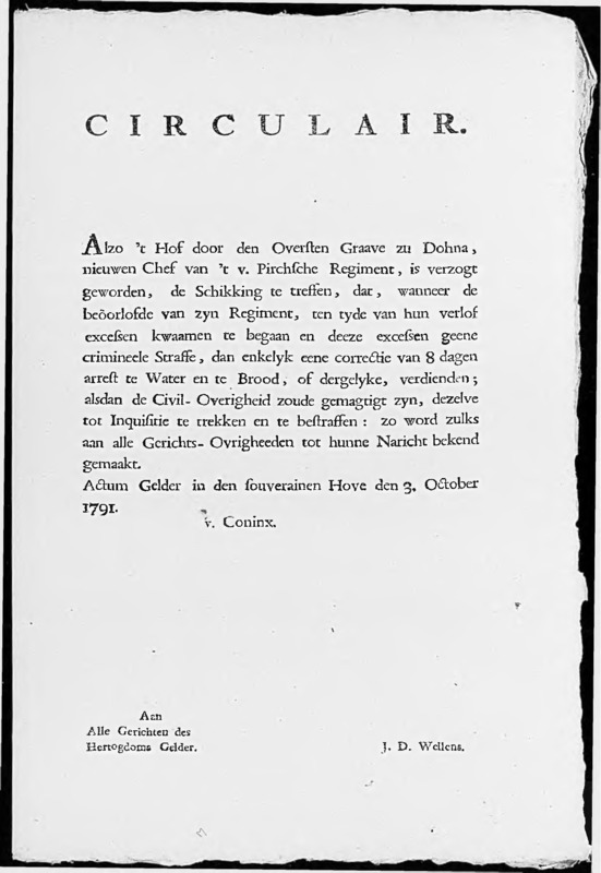 Bij circulaire van gelijke datum worden de rechterlijke instanties in Pruisisch Gelre vermaand binnen een week een exemplaar van het ALR aan te schaffen. Zij dienen 4 rijksdaalders en 16 groschen te betalen, alsmede 5 stuivers voor het brocheren.