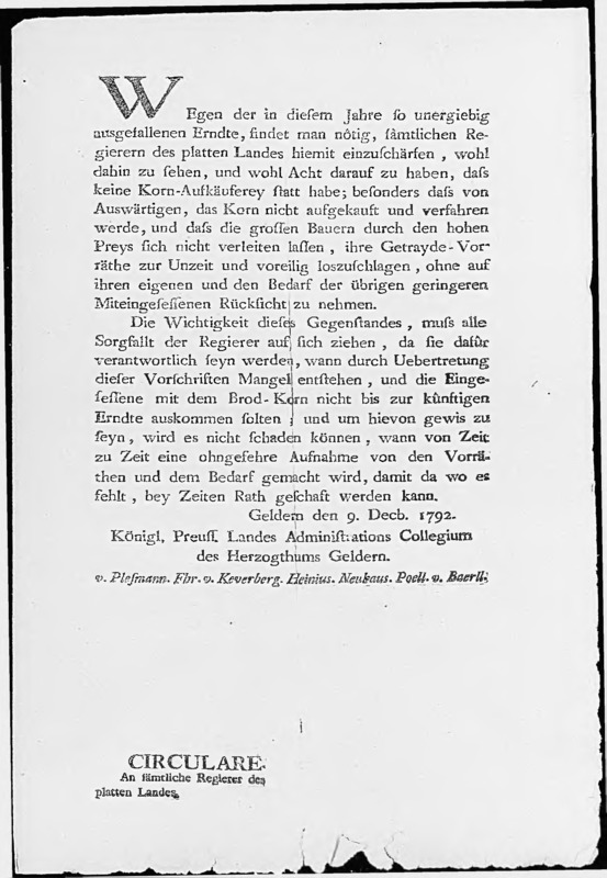 Wegens de karig oogst dienen de lokale overheden toe te zien, dat de graanprijs niet wordt opgedreven door opkopers.