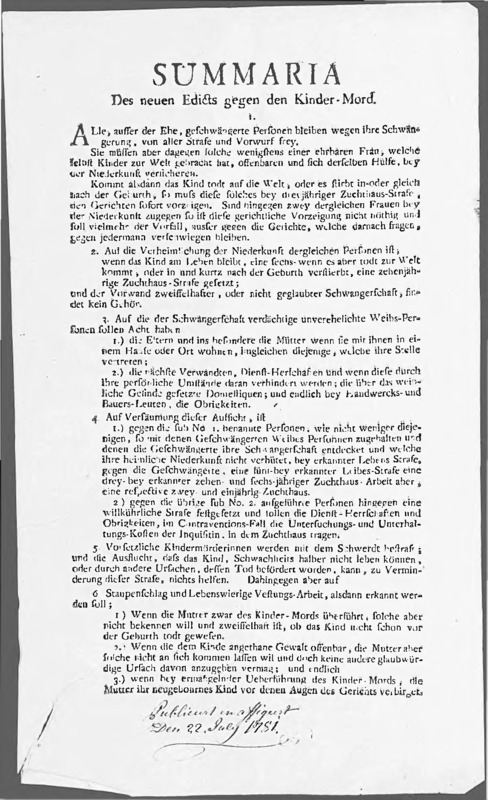 Samenvatting van het vernieuwd edict tegen kindermoord