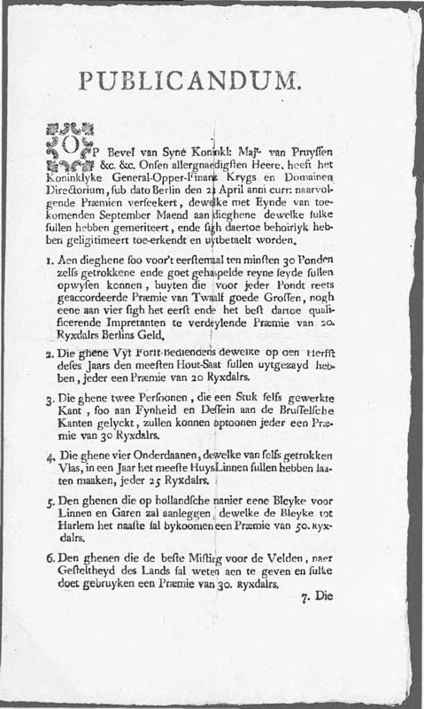 Publikatie ter zake van premies voor bijdragen aan landbouw en nijverheid