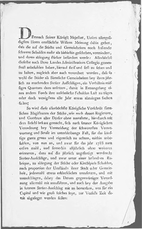 Ten einde de schulden ten laste van steden en gemeente versneld af te lossen, dienen de lokale overheden de jaarlijks te heffen belastingen met een speciale heffing te verhogen. Zij dienen jaarlijks aan het Landes Administrations Collegium te berichten over de vermindering van de schulden ten laste van de gemeente. De verordening dient jaarlijks bij de uitschrijving van de schat aan de gemeente te worden voorgelezen.