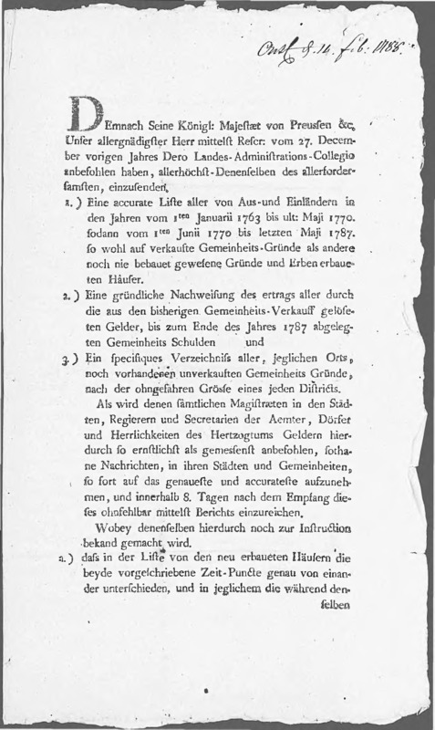 De lokale overheden in Pruisisch Gelre dienen zorg te dragen voor de tijdige en nauwkeurige indiening van tabellen. Nalatigheid wordt gestraft.