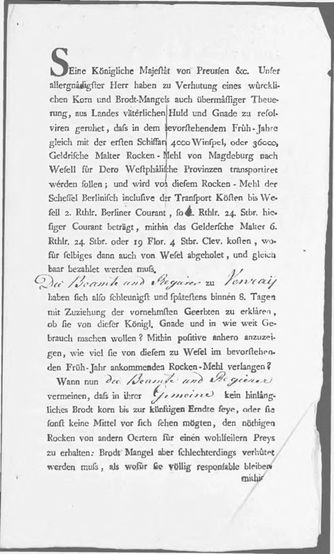 Circulaire ter zake graantransporten via het hertogdom Magdeburg naar de Westfaalse provinciën