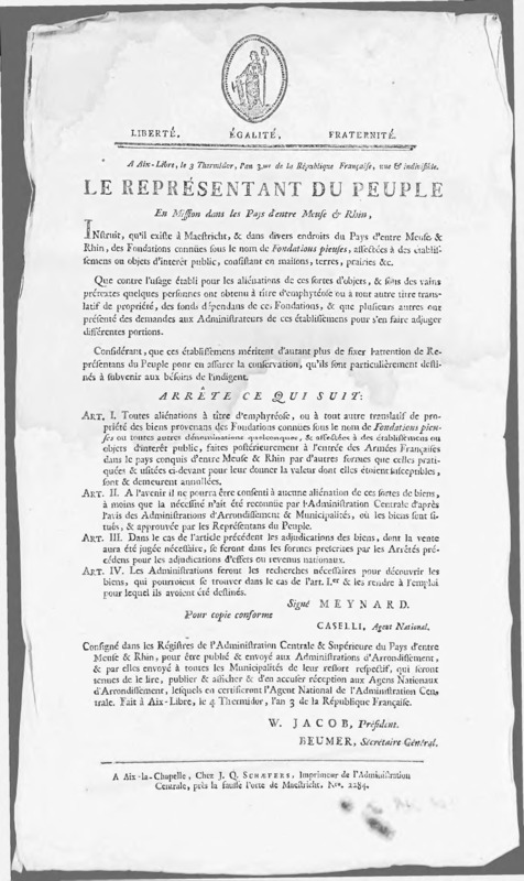 Het besluit werd uitgevaardigd ter voldoening van het besluit d.d. Aken, 24 mei 1795 (datum van afkondiging). Zie (? 1795-05-22)