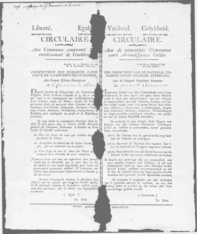 Het besluit werd uitgevaardigd ter voldoening van het besluit d.d. Parijs, 17 mei 1796. Zie ook (? 1796-06-30)