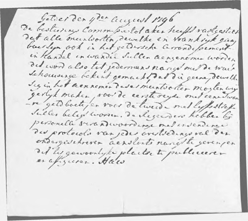Bekendmaking ter zake van de circulatie van Frans geld als wettig betaalmiddel
