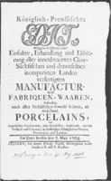 De verordeningen (? 1729-09-26), (? 1731-10-25), (? 1755-12-20) en (? 1756-03-16) ten vervolge, wordt het verbod van de uitvoer van goud en zilver herhaald. Goud en zilver mag enkel ter omsmelting worden aangeboden aan de Pruisische munthuizen, of hun leveranciers en commiezen. Indien een christelijke koopman zich aan uitvoer van edele metalen schuldig maakt wordt hij gestraft met verlies van het edel metaal en een boete van het dubbele van de waarde. Indien het een joodse koopman betreft verliest hij daarenboven ook zijn beschermbrief.Plaats van uitvaardiging: Berlijn -