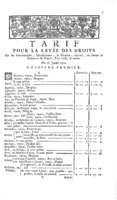 TARIEF VAN DE RAAD VAN FINANCIËN TERZAKE VAN DE HEFFING VAN IN- EN UITGAANDE RECHTEN VAN GOEDEREN KOMENDE VAN, OF BESTEMD VOOR FRANKRIJK, DE GECEDEERDE EN ANDERE BEZETTE GEBIEDEN